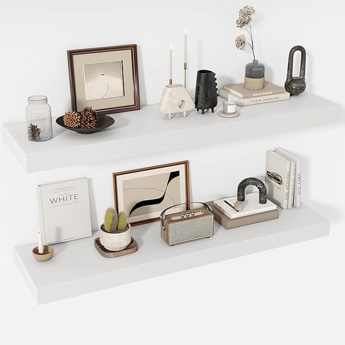 - [STURDY & RELIABLE CONSTRUCTION] Built with a robust hidden mounting system, these shelves securely hold heavy decor and everyday items. The reinforced brackets and included hardware ensure a wobble-free installation, offering peace of mind when displaying delicate ceramics, electronics, or cherished collectibles.