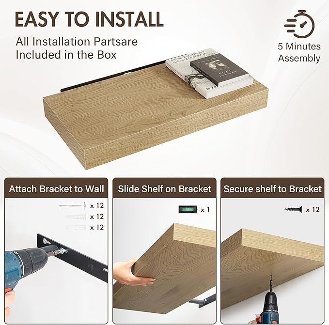 - [EFFORTLESS INSTALLATION] Each set comes with all necessary hardware and a clear, step-by-step guide for quick mounting. Transform your walls in minutes—no special tools required. Whether you're a DIY beginner or a seasoned decorator, these shelves make upgrading your space simple and hassle-free.