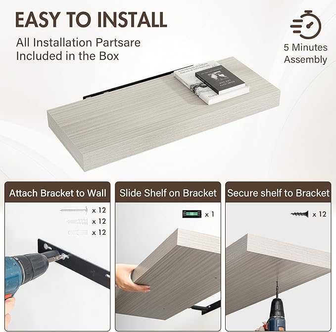 - [EFFORTLESS INSTALLATION] Each set comes with all necessary hardware and a clear, step-by-step guide for quick mounting. Transform your walls in minutes—no special tools required. Whether you're a DIY beginner or a seasoned decorator, these shelves make upgrading your space simple and hassle-free.