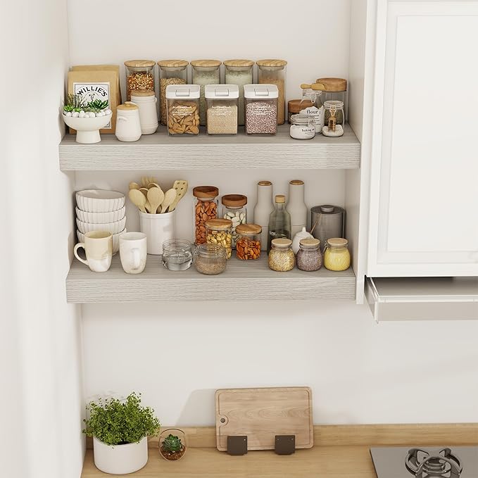 - [SPACE-SAVING WALL SOLUTION] Ideal for maximizing small rooms, kitchens, or cozy apartments, these shelves create storage without cluttering floors. Their floating design opens up living areas, making spaces feel airy and well-organized. Use them in entryways, bathrooms, or home offices to keep daily essentials neatly displayed yet within easy reach.