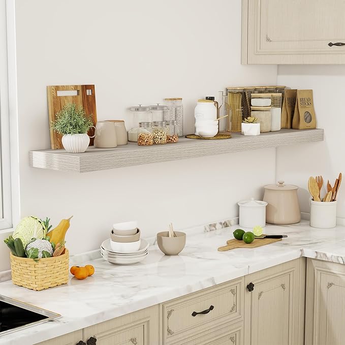 - [GENEROUS DISPLAY & STORAGE] With an expansive 12-inch depth, these floating shelves offer abundant room for books, kitchen essentials, decorative accents, and more. The extra-wide surface accommodates larger items like potted plants, baskets, or framed art, while the 2-inch thick design ensures sturdy support. Perfect for organizing and showcasing your favorite pieces without compromising on style or functionality.