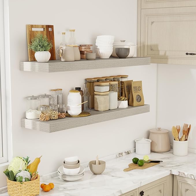 - [SPACE-SAVING WALL SOLUTION] Ideal for maximizing small rooms, kitchens, or cozy apartments, these shelves create storage without cluttering floors. Their floating design opens up living areas, making spaces feel airy and well-organized. Use them in entryways, bathrooms, or home offices to keep daily essentials neatly displayed yet within easy reach.
