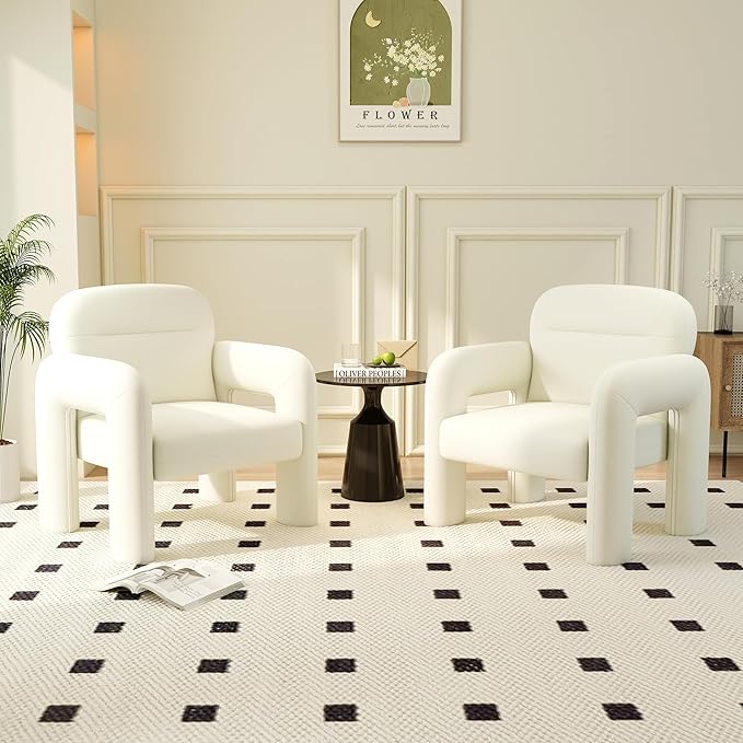 LSSPAID Accent Chairs, Modern Line Fabric Upholstered Armchairs, Comfy Leisure Reading Chair Fluffy Single Sofa Chair for Living Room, Bedrooms, Office (White, 2PCS)