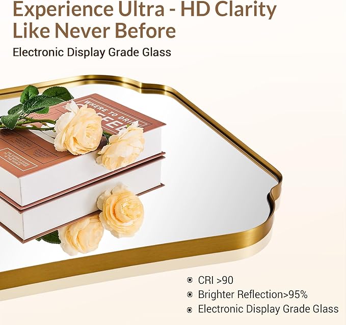 - HIGH - DEFINITION CLARITY: The bathroom vanity mirror uses digital display grade silver glass that provides excellent reflection and lighting for your space. Bass gold mirror guarantees high definition without any distortion, offering true - to - life images