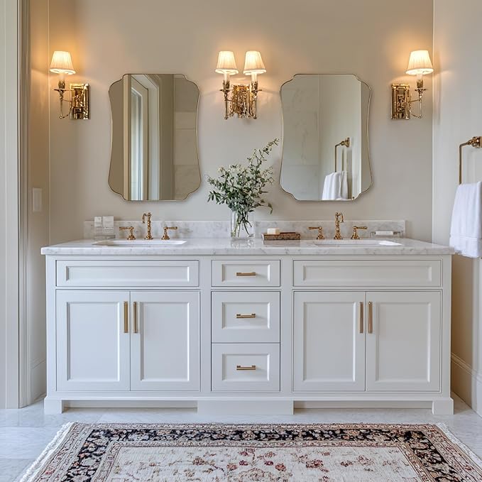 - VINTAGE SCALLOPED EDGE DESIGN: Elevate your space with handcrafted brushed gold- scalloped arcs, meticulously sculpted for a luxury vintage touch .Each curve polished by artisans reflects timeless elegance, perfect for boudoirs and chic bathrooms