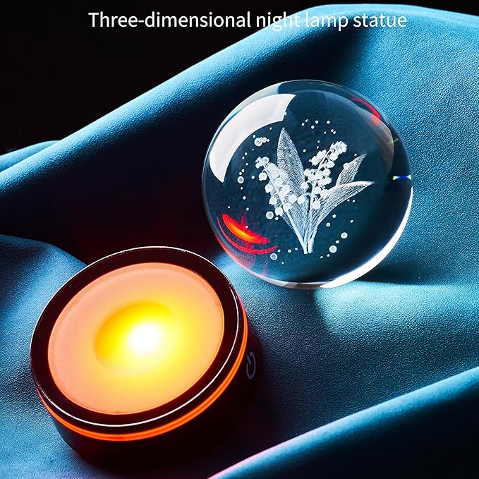 - High quality K9 crystal : The glass ball made of high-purity K9 crystal presents a lifelike 3D orchid shape through laser engraving, with high clarity and resistance to fading and wear, which can preserve this sentiment for a long time. The set includes 3D crystal lily of the valley, colored LED base, exquisite gift box, greeting card, and cleaning cloth, providing a one-stop solution for gift giving needs without the need for extra packaging.