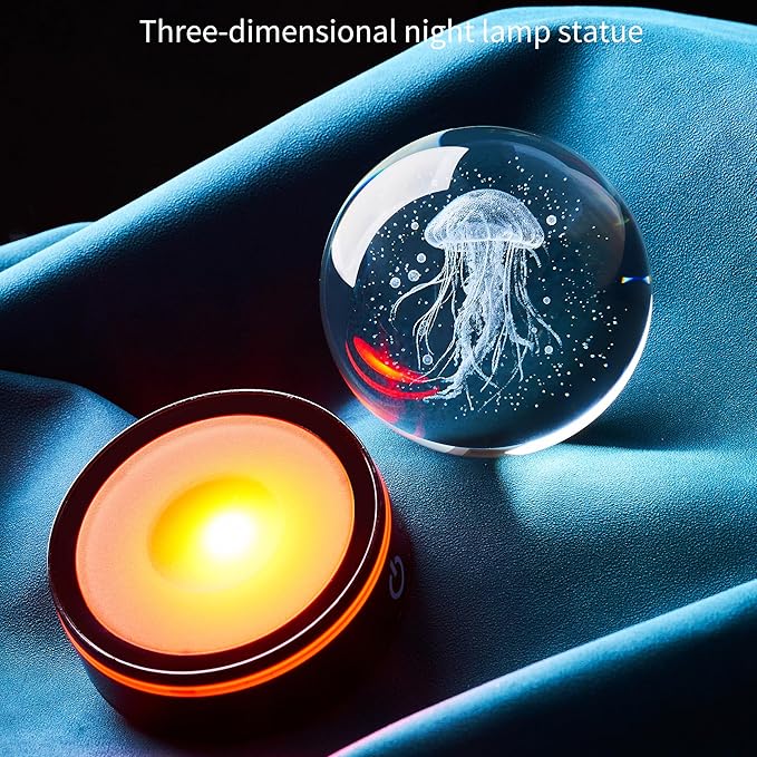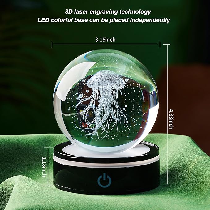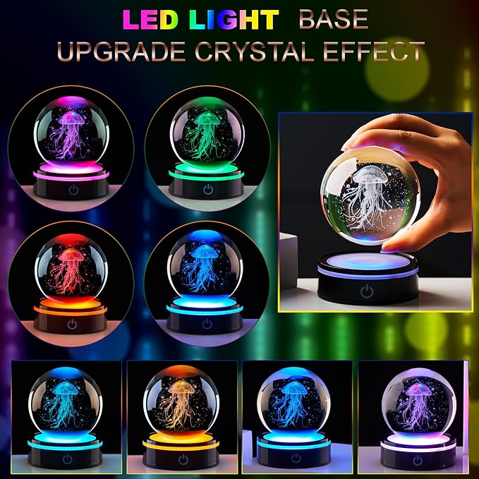 - The choice to convey one's feelings: Whether it's on her daughter's birthday, give her this crystal ball and let her make beautiful wishes in the ocean light and shadow; Surprise your son on Christmas and add joy to the holiday with the agility of jellyfish; When expressing gratitude to teachers, use it to convey deep respect like an ocean; When a colleague resigns, it is used as a commemoration, symbolizing that friendship is pure and lasting like crystal. This 3D crystal ball jellyfish decoration is capable of handling it, with a unique ocean themed design that makes every special moment more unforgettable because of this gift