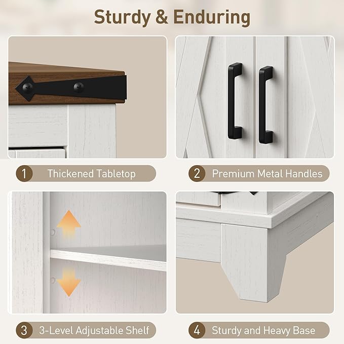 - Ample & Flexible Storage: Sized 23.6”L x 23.6”W x 25.6”H, the farmhouse side table has a spacious square top for a lamp and glasses. The cabinet below features framed doors and a 3-level adjustable shelf inside to neatly organize bedside clutter and keep everything tidy