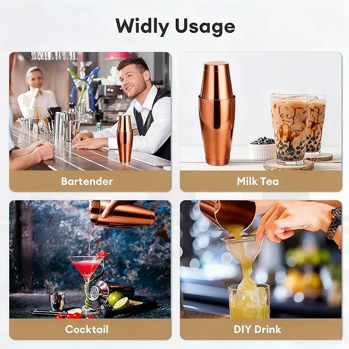 - Leak-proof design: Our Boston cocktail shakers feature a leak-proof design that ensures most drinks and liquids remain inside during shaking; The sturdiness of stainless steel ensures that the blender can safely hold different ounces of liquid, allowing you to focus on creating beautiful cocktails.