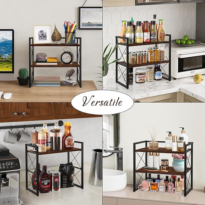 - 【Space-Saving Design】: This 2-tier desktop shelf is designed to help you maximize space on your desk or office desktop. It's perfect for storing books, office supplies, spice vases, plants, toiletries, towels, and cherished keepsakes. Say goodbye to clutter and hello to a tidy workspace in your office, kitchen, bathroom, or bedroom.