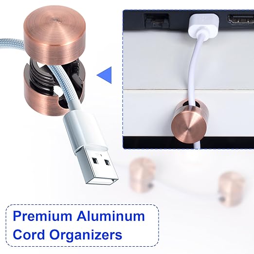 2 Sets Charger Holders for Cords, Red Bronze Color Adjustable Cable Anchor Holders, Adhesive Metal Cord Clips, Cable Management Wire Organizers for Desk, Office, Nightstand