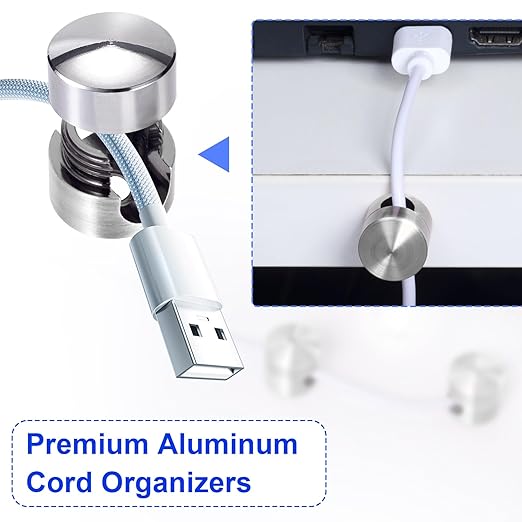 - Easy to Use: The package includes 2 stickers for using. You just need to clean the surface that you are going to attach the cord anchor to, then stick the silver cord holder on the surface with glue stickers, and thread the cable from the hole to keep it organized