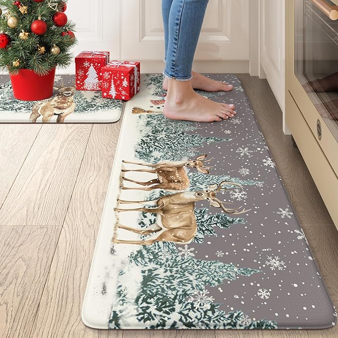 - Christmas Decor: Our Christmas kitchen mats feature multiple classic holiday patterns, ideal for adding warm and elegant seasonal vibes to your kitchen, bathroom, laundry room, bedroom, or desk