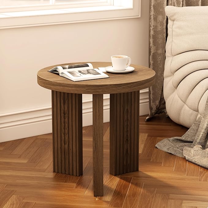 - Sturdy Wooden Side Table: Our classic small round side table boasts a high-quality wood grain veneer finish that imitates the natural beauty and texture of walnut. The waterproof and wear-resistant multi-step finish process protects the wood grain veneer while ensuring it remains looking sleek over time. The simple yet attractive design creates a classic look, whether minimalist or luxurious.