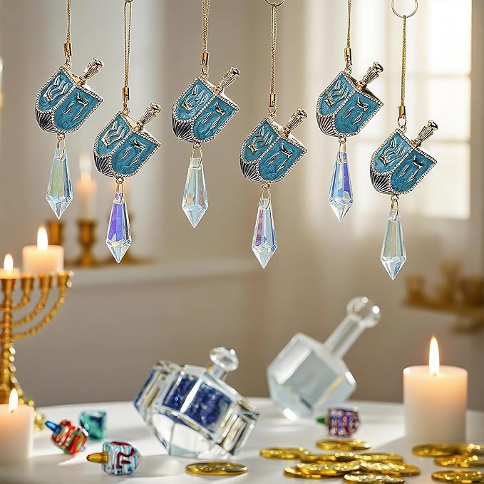 6 PCS Hanukkah Dreidel Hanging Ornaments, Crystal Suncatchers for Christmas Tree, Halloween & Hanukkah Decorations, Window Suncatchers & Gift