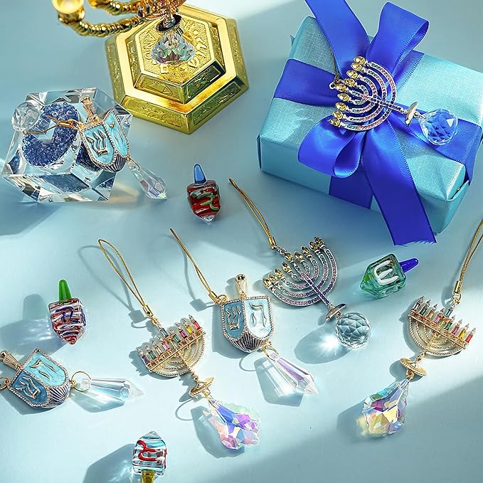 - Festive & Elegant Design: These beautiful Menorah and Dreidel ornaments are designed with vibrant colored gems and sparkly crystals, making them perfect for Hanukkah celebrations and holiday decorations.