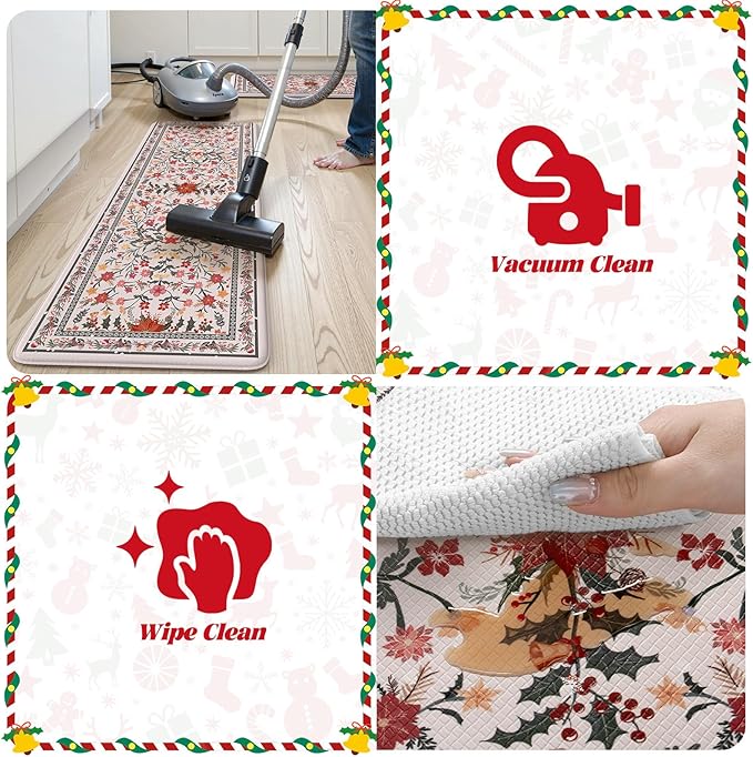 - Easy Clean and Care: Maintenance is a breeze! Simply wipe the surface of the kitchen rugs with a damp rag and sponge, or use a vacuum cleaner to remove dust and dirt. Regular cleaning and care will greatly save your time and energy