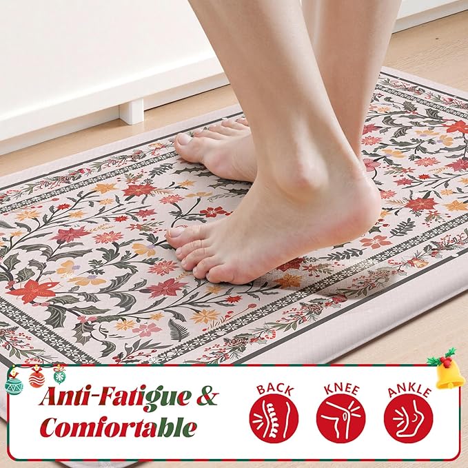 - Floral Pattern & Versatile: Featuring a freshness floral design, this comfort carpet adds a touch of elegant and vitality to your space. The combination of vintage bohemian and modern style can decorate your kitchen, bathroom, laundry room, bathroom