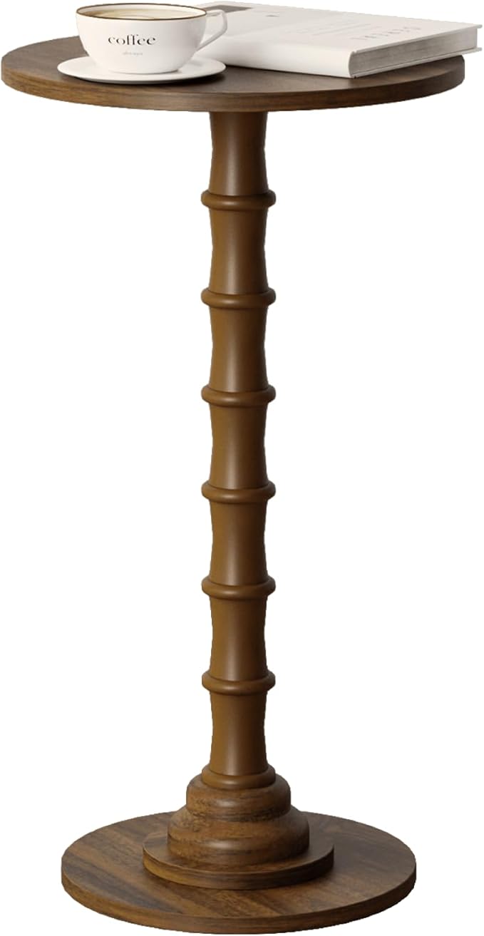 Round Side Table, Modern Drink Table for Small Spaces, Slim End Table with Solid Wood Leg for Living Room, Bedroom, Corners, and Office (Walnut Brown)