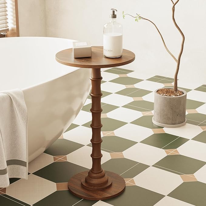 - 11.8''Dia. x 21.2''High Compact Size for Space-Saving Placement: With a diameter of only 11.8 inches and height of 21.6 inches, this side table takes up minimal floor space but offers enough tabletop area for daily use (e.g., holds a 16oz water bottle + a book + a small lamp). It’s lightweight (only 4.4 lbs) too—you can easily move it from the living room to the bedroom, or even take it to the balcony when you want to enjoy afternoon tea outdoors.