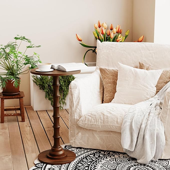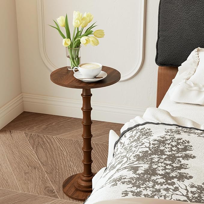 - Walnut-Grain Aesthetic + Safe Rounded Design for Stylish Minimalism: This round side table elevates your space with a rich walnut-grain pattern and unique tone, perfectly blending into minimalist, modern, or cozy home decor. Its smooth rounded tabletop eliminates sharp edges—safe for kids and pets—while the wooden ball connectors on one leg add a subtle, elegant detail that avoids plainness. Whether placed in the living room, bedroom, or balcony, it instantly enhances your room’s ambiance without overwhelming the space.