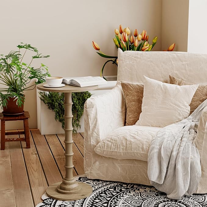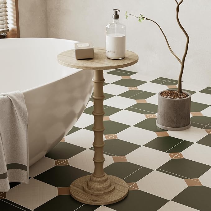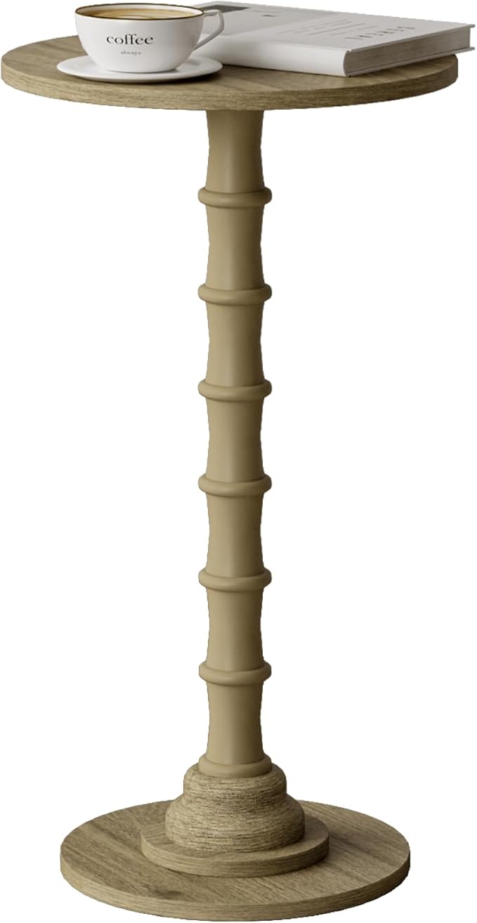 - 11.8''Dia. x 21.2''High Compact Size for Space-Saving Placement: With a diameter of only 11.8 inches and height of 21.6 inches, this side table takes up minimal floor space but offers enough tabletop area for daily use (e.g., holds a 16oz water bottle + a book + a small lamp). It’s lightweight (only 4.4 lbs) too—you can easily move it from the living room to the bedroom, or even take it to the balcony when you want to enjoy afternoon tea outdoors.