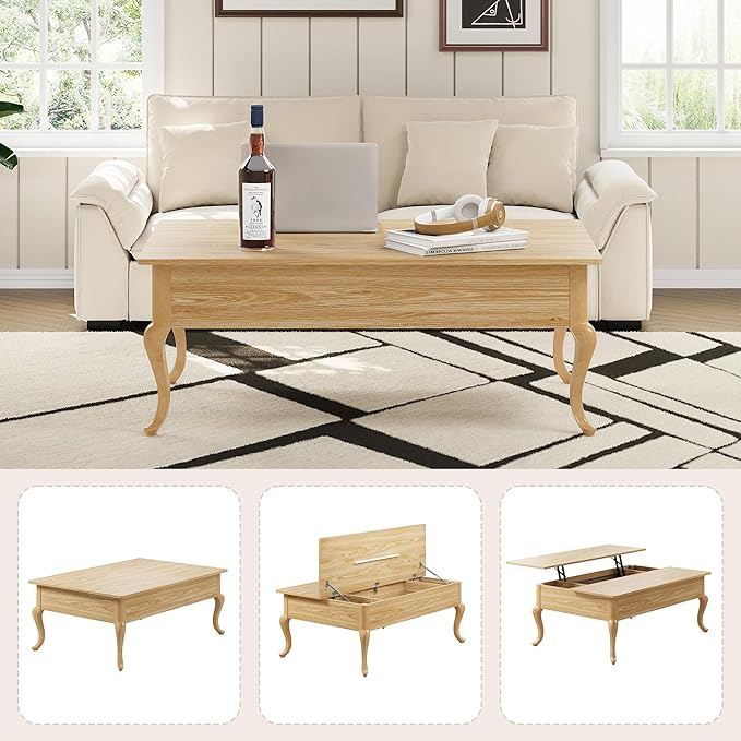 - 【Durable Structure】 Crafted from high-density engineered wood, this coffee table lift top is durable enough to withstand everyday use. The cabriole table legs are made of solid wood for a refined look and excellent load-bearing capacity, while non-slip plastic pads prevent slipping and protect floors from scratches.