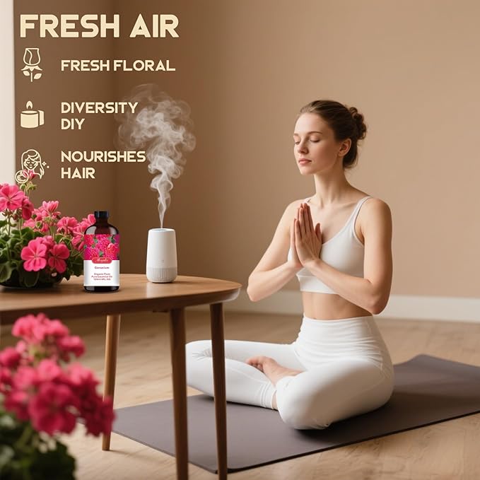 - * You can use multi-purpose essential oils - Geranium essential oil is suitable for aromatherapy machines and has many other uses. Use it for aromatherapy machines, humidifiers, home fragrance, spa, cleaning, massage, yoga, DIY candles, DIY soaps, perfume, car fragrance, bath balls, etc.
