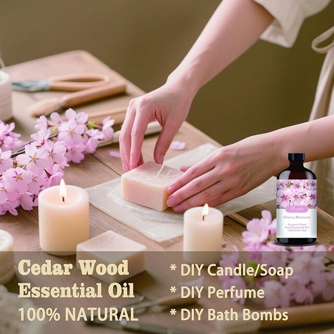 - * You can use multi-purpose essential oils - Cherry Blossom essential oil is suitable for aromatherapy machines and has many other uses. Use it for aromatherapy machines, humidifiers, home fragrance, spa, cleaning, massage, yoga, DIY candles, DIY soaps, perfume, car fragrance, bath balls, etc.