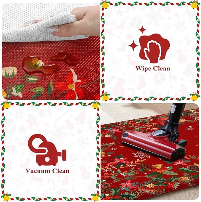 - Stable Kitchen Floor Mats: This memory foam Christmas kitchen mat is made of PVC material. Excellent mat material determine its durability, elasticity and softness. Pets and kids friendly. It will keep its shape even after a long period of heavy use