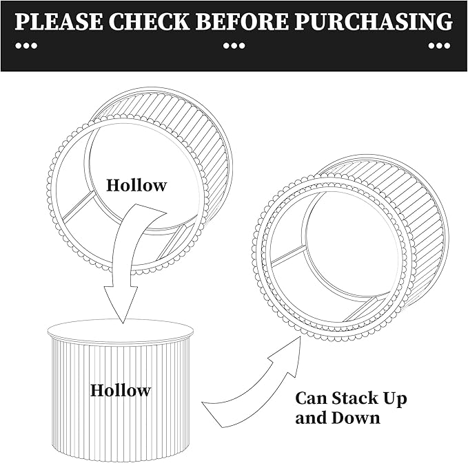 - Space-Saving Nesting Coffee Table: Perfect for small spaces! The set includes two sizes: - one Coffee table (Φ 18.9 x H 14.96 inch) and one side table (Ø 14.96 x H 11.81 inch). Stack them effortlessly using the hollow base for a compact footprint, or separate for multi-level display. An ideal nesting table solution for apartments, dorms, or optimizing living rooms.