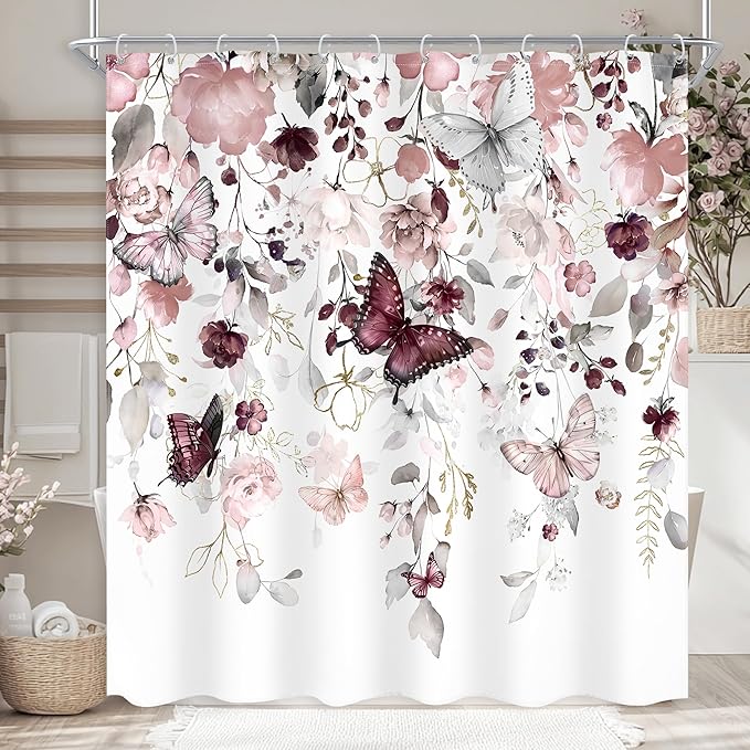 - ▶Unique Design: Designed with Watercolor Butterfly Flower Bathroom Decor Set for Girl Woman Female Beautiful Retro Vintage Botanical Farmhouse Rose Botany Peony Blooming Pretty Artistic pattern printing technology, vibrant and vivid, give your bathroom a new feel.