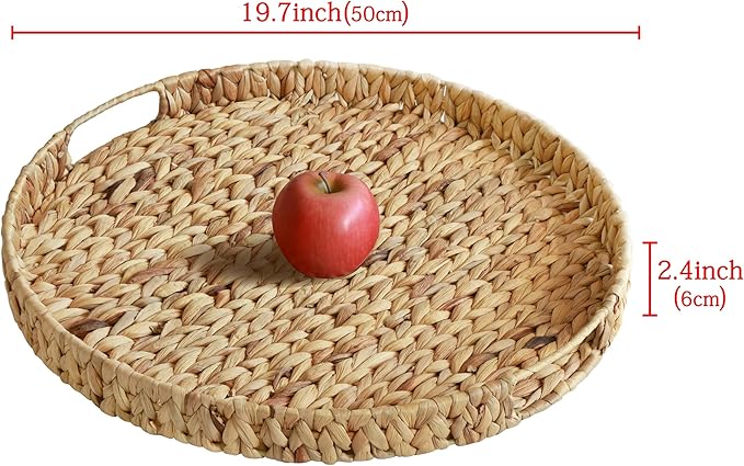 - HIGH QUALITY - Our extra large woven water hyacinth serving tray is crafted from water hyacinth over a sturdy iron frame. Not only functional but also serves as a decorative piece that adds a touch of natural elegance and a connection to nature. With handles for easy carrying and serving