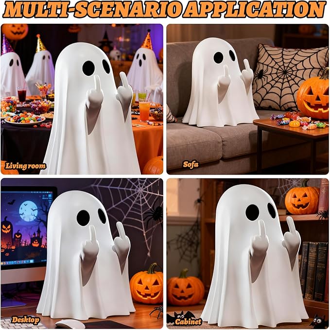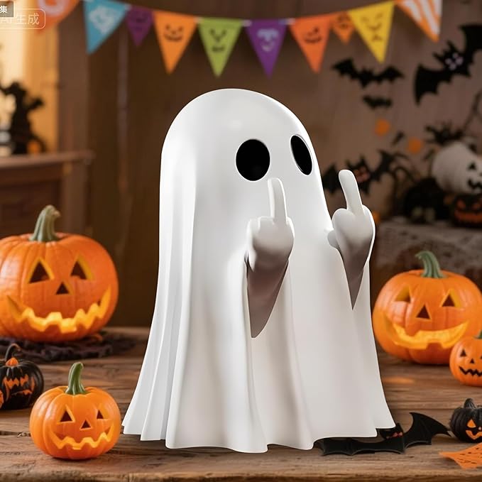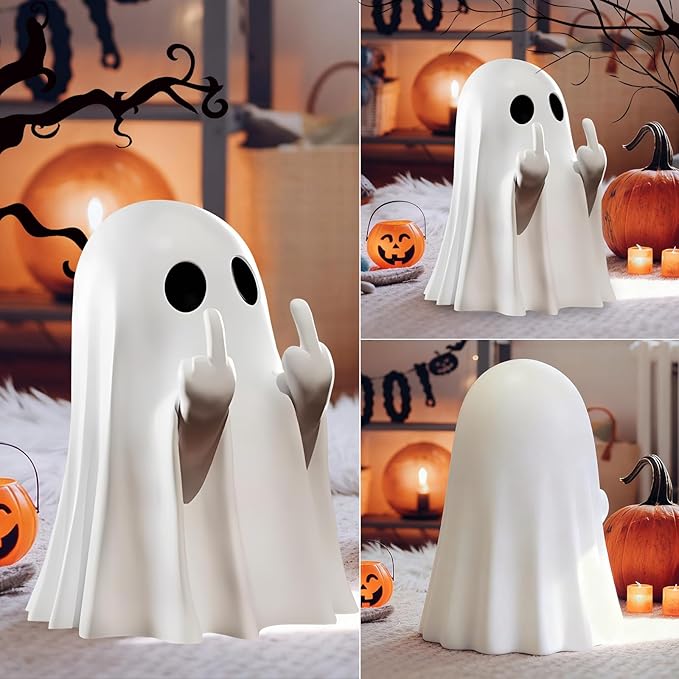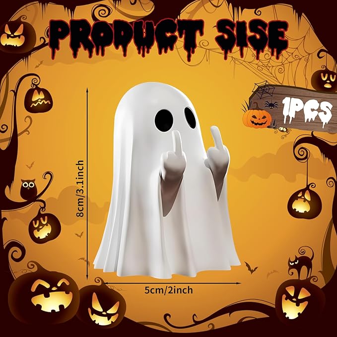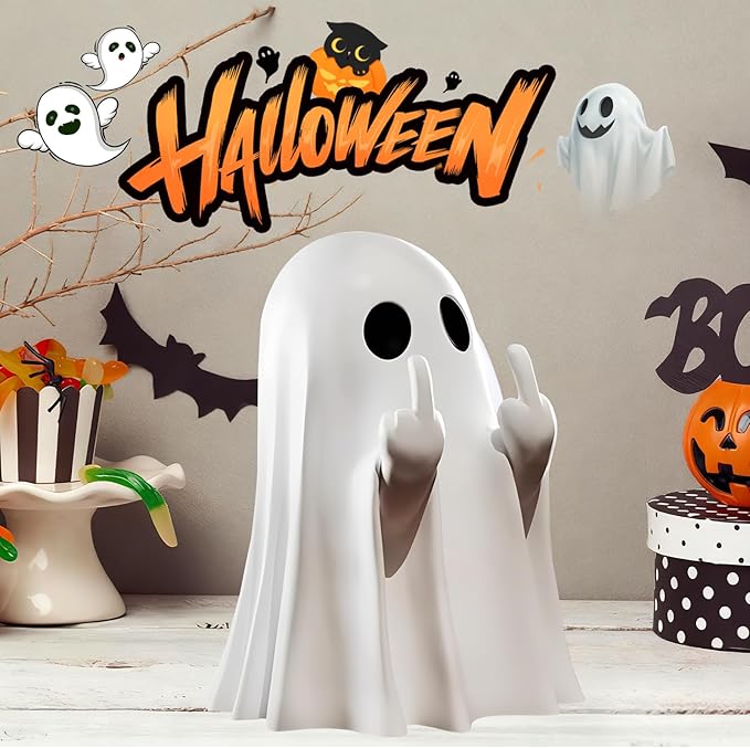 Halloween Ghost Figurine, Halloween Decor,Ghosts Middles Fingers Figurine,Spooky Cute,Haunted Porch & Indoor Home Statue,Coffee Table Centerpieces Shelf Mantel Display