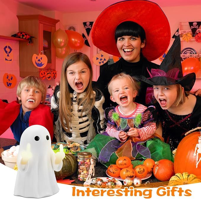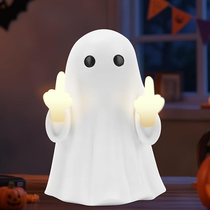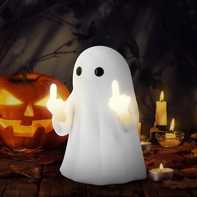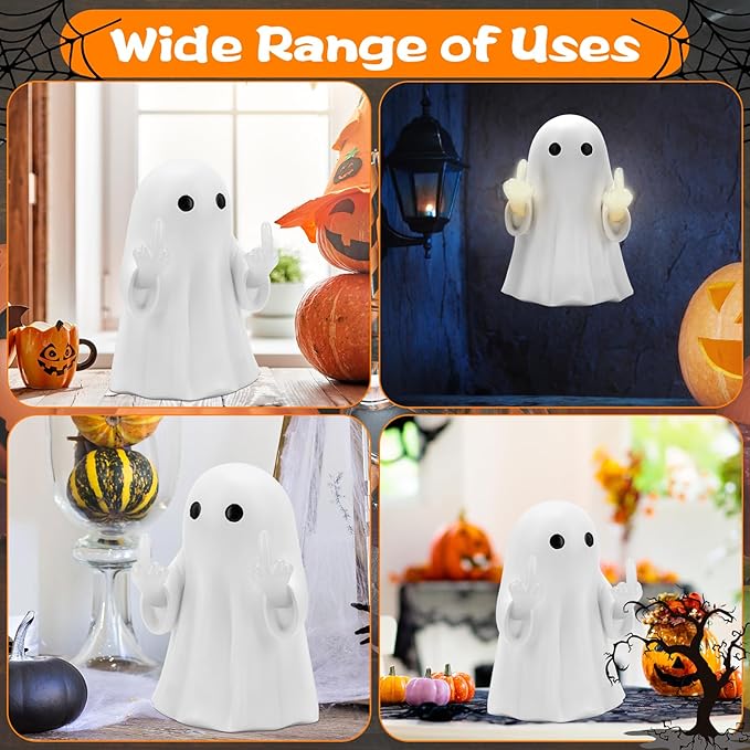 7.9 * 4.7in Halloween Ghost Figurine,Halloween Decorations Light up Ghost Spooky & Cute Finger Ornaments for Home, Desk, Party Porch Decor Indoor Decor Funny Middle Finger
