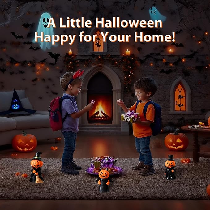 - 【Unique Halloween Mini Figurine Set】This package includes three exquisitely designed mini pumpkin people. Their cute and whimsical design captures the classic spirit of Halloween, adding a playful and spooky touch to your holiday décor.