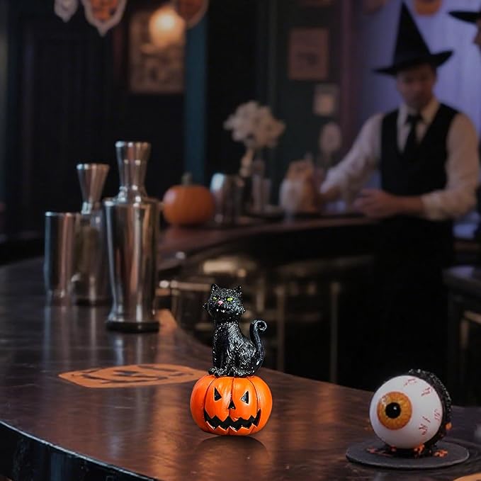- 【Enchanting Halloween Fusion Design】This adorable sculpture combines two beloved favorites: a mischievous black cat and a classic pumpkin. The perfect symbol of spooky season charm, it adds a touch of whimsical and festive spirit to any space, making it an essential Halloween decor item.