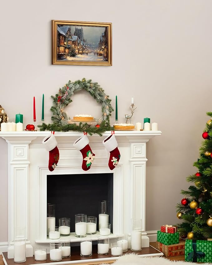 VIYYIEA Vintage Gold Framed Wall Art for Living Room, Christmas Canvas Prints Home Decor, Oil Painting Picture, Bedroom Wall Decor Gifts for Friends or Family -【A Cold Snowy Night】-(16L x 12W)