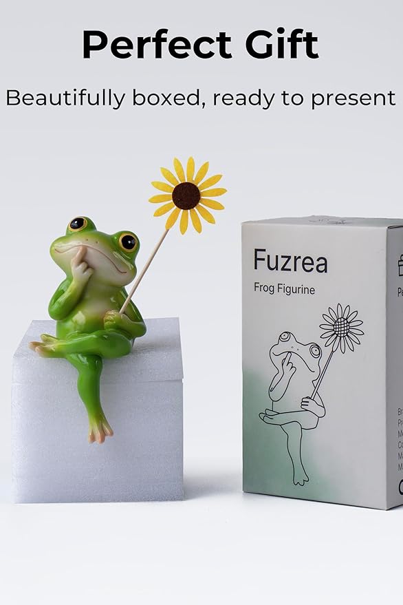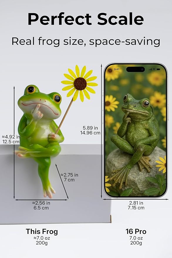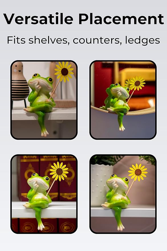 - CUTE & COMFORTING — a whimsically charming resin frog figurine crafted to bring a gentle, soothing presence into any room; compact and artfully posed, it perches neatly on shelves, desks, or bedside tables to add a heartwarming accent that brightens daily routines and evokes a playful, cozy atmosphere for home and office display.