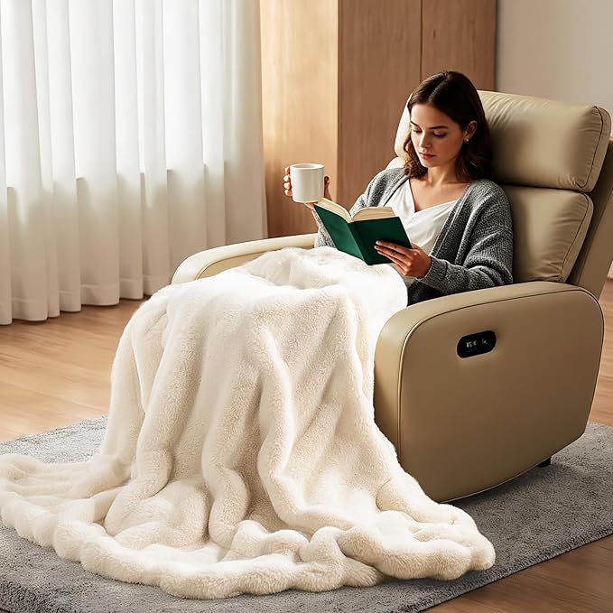 - Premium 450GSM Faux Fur for Reliable Winter Warmth: Made from high-quality, medium-weight (450GSM) faux rabbit fur, this blanket provides effective warmth without excessive bulk. Engineered to be anti-shedding and anti-static, it offers lasting softness and comfort throughout the cold season. The plush material efficiently traps heat to keep you cozy.