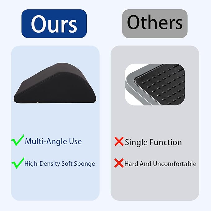 - Ergonomic Design: Opuvidity Our under-desk footstool features a tilted and curved double-sided design to help you maintain a good sitting posture and reduce fatigue caused by sitting for long periods of time. Whether you are working or playing, your feet can get enough rest.