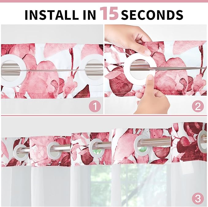 QiyI No Hook Shower Curtain with Snap in Fabric Liner, Pink Eucalyptus Shower Curtain with See Through Top Window, Waterproof Washable Cloth Ringless Shower Curtain Set for Bathroom, 72 x 75