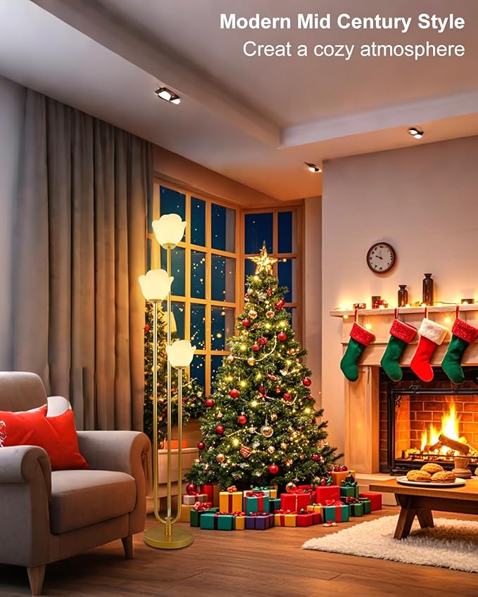 - Unique & Exquisite Modern Design ✨ This 63-inch gold floor lamp boasts a mid-century inspired silhouette with three flower lights artfully arranged on a U-shaped triple metal frame. The elegant minimalist structure blends seamlessly with contemporary, vintage, or industrial decor, adding a touch of sophistication to living rooms, bedrooms, or offices.
