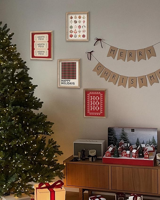 Wheatwin Christmas Wall Art Prints Set of 4, Trendy North Pole Wall Posters Aesthetic, Happy Holidays Winter Xmas Decor for Bathroom Farmhouse Living Room Bedroom, 12x16 (Unframed)