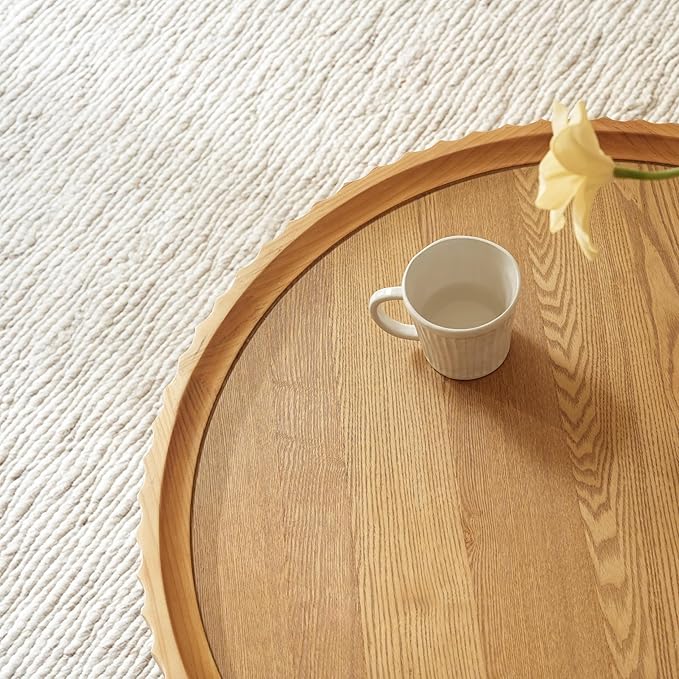- 【Made of high-quality pine wood】This round living room coffee table is made entirely of high-quality pine wood. The raised edges prevent items from falling off, and compared to traditional coffee tables with multiple legs, our round base is more stable!
