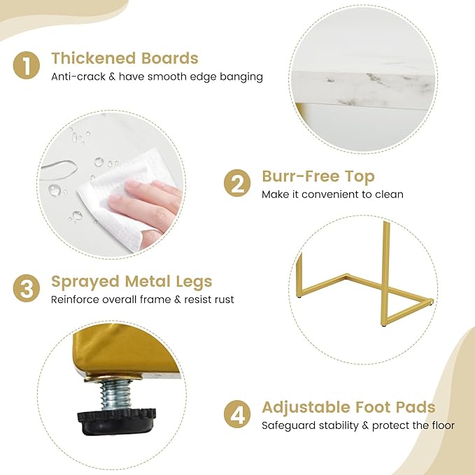 Giantex Nesting Coffee Table Set of 3, Stackable Square End Table w/Faux Marble Tabletop & Heavy-Duty Metal Frame, Farmhouse C-Shaped Accent Table for Small Space, Living Room, Bedroom (White Gold)