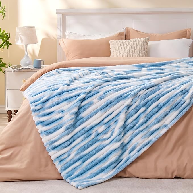 BEDELITE Twin Blanket for Couch & Bed, 300GSM Soft & Warm Fleece Blanket, Decorative and Giftable Striped Tie-dye Blue Blankets for Women, Men, 60"x80"