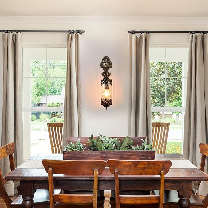- 【Versatile Decor Compatibility】This rustic farmhouse sconce complements a wide range of decor themes—from Gothic and industrial to rustic and farmhouse styles. Its refined design and intricate details allow it to integrate seamlessly into modern interiors, making it a perfect accent for living rooms, bedrooms, entryways, fireplaces, and corridors.