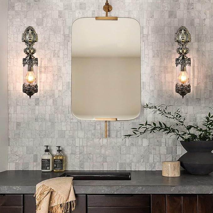 Rustic Wall Sconce with Clear Glass,Vintage Antique Gothic Wall Light Fixture E26 Mid Centry Lantern Bedside Sconces Wall Lighting for Living Room Bathroom Hallway Mirror