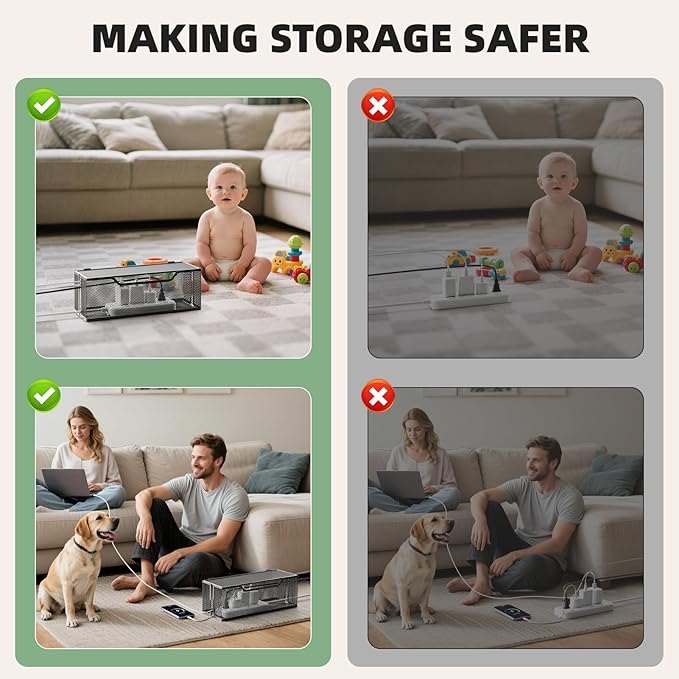 - 【AMAZING GIFT】Tired of tangled cords at home or in the office? Our cable organizer box is designed to eliminate clutter and keep your space neat, safe, and organized.It’s the perfect gift for family and friends—share the benefits of a tidy and stress-free environment with those you care about!